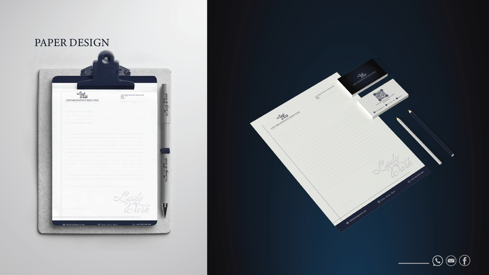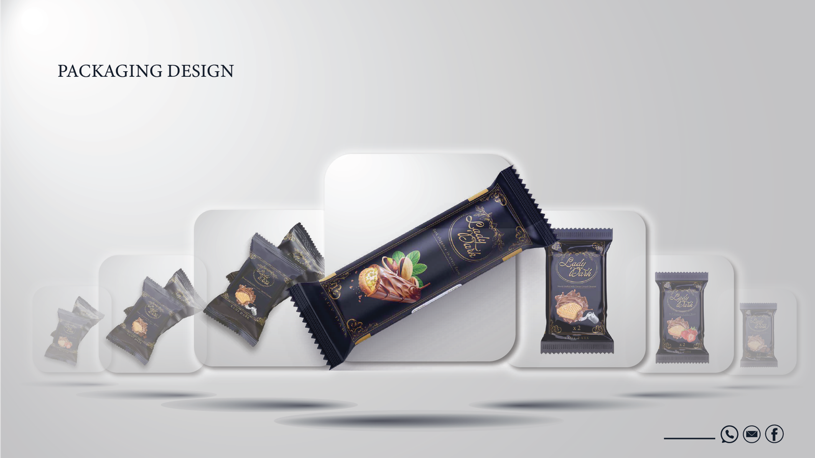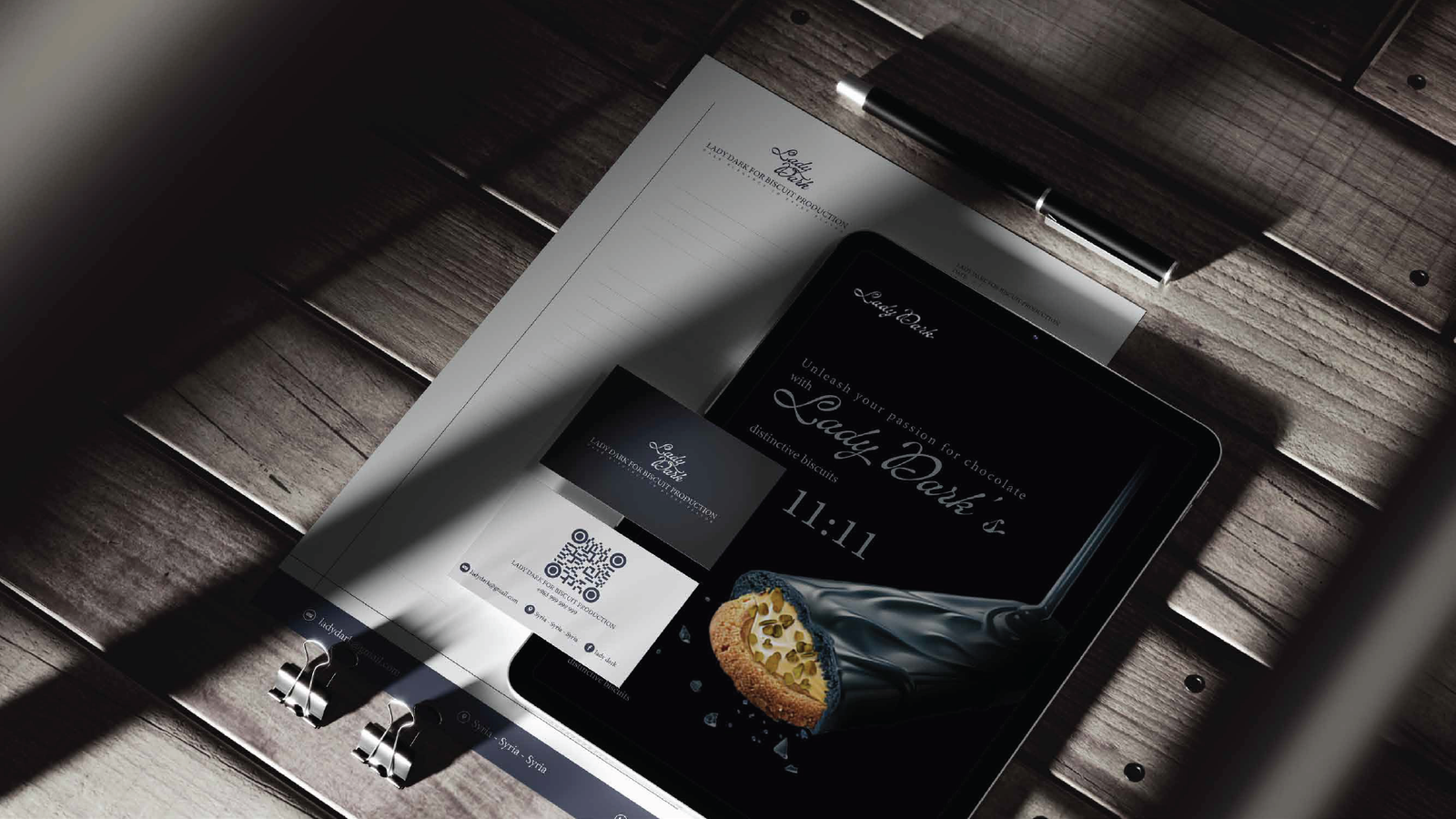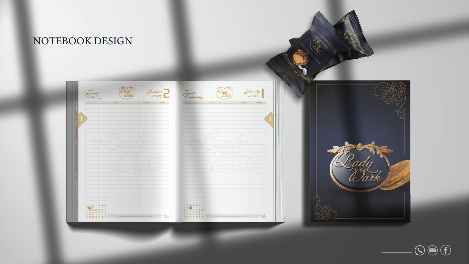 فلسفة التصميم: حيث تلتقي العراقة بالحداثة في Lady Dark، لم نصمم مجرد شعار، بل بنينا نظاماً بصرياً متكاملاً يعكس "الأناقة الداكنة" في كل تفصيلة. إليك كيف ترجمنا رؤية البراند إلى واقع ملموس: 1. المفهوم البصري (The Concept): اعتمدنا على الدمج بين الزخارف الكلاسيكية (Baroque/Floral Patterns) التي تعطي انطباعاً بالعراقة والفخامة، وبين الخطوط الانسيابية الحديثة. الهدف هو خلق براند "خالد" (Timeless) يخاطب حواس العميل قبل تذوق المنتج. 2. لوحة الألوان (Color Palette): تم اختيار الألوان بعناية فائقة لتعزيز الشعور بالـ "Premium": Deep Navy & Midnight Blue: ليعطي عمقاً، استقراراً، وفخامة لا تضاهى. Gold & Sand Tones: لإضافة لمسة من الإشراق والتباين العالي، مما يوحي بالجودة الذهبية للمكونات. Neutral Grey: لتحقيق التوازن البصري وجعل الهوية مريحة للعين في القنوات الرقمية. 3. الخطوط والتايبوجرافي (Typography): استخدمنا خط Minion Variable Concept وخطوطاً مخصصة (Custom Script) للشعار: الخطوط المنحنية في كلمة "Lady Dark" تعكس النعومة والانسيابية، بينما تعطي الخطوط "السيريف" (Serif) في النصوص الفرعية طابعاً رسمياً وجاداً يعزز من موثوقية البراند كشركة إنتاج بسكويت عالمية. 4. التغليف وتجربة المستخدم (Packaging & UX): النمط الزخرفي (Patterns): قمنا بتصميم أنماط فنية تُستخدم في التغليف وداخل التطبيقات الرقمية لتعزيز الـ Brand Recall (تذكر العلامة). التطبيق الرقمي: تم تصميم أيقونات وواجهات تطبيق الهاتف ببساطة متناهية (Minimalist) لتسهيل رحلة العميل في الطلب، مع الحفاظ على روح الهوية الداكنة والأنيقة. النتيجة: هوية بصرية لا تكتفي ببيع "بسكويت"، بل تبيع "تجربة فخمة" تبدأ من شكل العلبة وتنتهي بلذة المذاق.